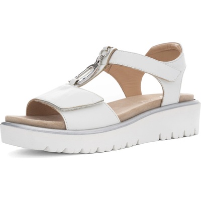 Dámské kožené sandály v bílé barvě s upínacími pásky na suchý zip a robustní podešví.