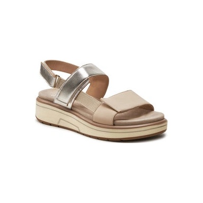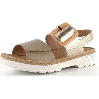 Dámské kožené sandály v béžovo-zlaté barvě s upínacími pásky na suchý zip a robustní podešví.