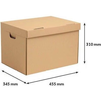 Úložná krabice s víkem vyrobena z kvalitní vlnité lepenky, vhodná pro ukládání všeho od dokumentů, katalogů přes oblečení nebo dětské hračky. Pevné dno zajistí bezpečnou...