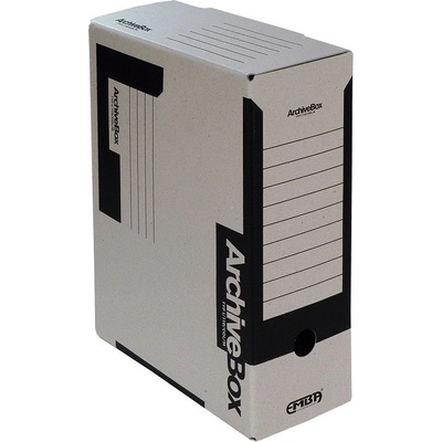 archivační krabice určení A4, materiál karton, samostatné víko, laminovaný povrch a skládací, barva krabice - bílá a šedá, objem 9,54 l, výška 10 cm, šířka 26,5 cm, hloubka 36...