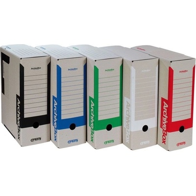 Archivační box papírový, vhodný pro dokumenty formátu A4, s uzavíratelnou konstrukcí a šířkou hřbetu 110 mm. Rozměr 330×260×110 mm. Prodává se v balení po 25 kusech. Vyroben z...