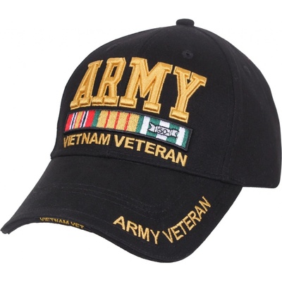Pohodlná nízkoprofilová baseballka z česané bavlny s nápisem Army Veteran Vietnam a s vyšitými stužkami. Menší nápis na kšiltu Army Veteran a na hraně kšiltu nápis Army Vet. -...