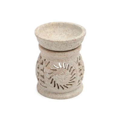 Překrásná aromalampa z mastku s krásným vyřezávaným motivem slunce. Mísa na vrcholu se bude pomalu zahřívat a aromatický olej vám začne prolévat svou vůni po celém...