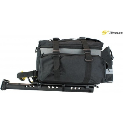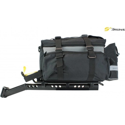 Sport Arsenal 450 brašna na nosič Víceúčelová brašna na zadní, nebo přední nosič s možností zvětšení objemu brašny - v případě rozepnutí horního zipu. Brašna má jednu velkou vnitřní kapsu a dvě postranní vnější kapsy na zip pro praktické rozložení nákladu. Nasazení...
