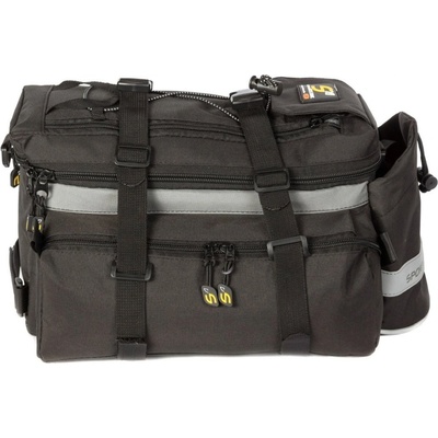 Víceúčelová brašna na zadní, nebo přední nosič s nastavitelným objemem - v případě rozepnutí horního zipu. Brašna má jednu velkou vnitřní kapsu a čtyři postranní vnější kapsy...