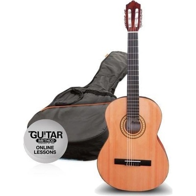Klasická kytara paket 4/4 Ashton SPCG 44 BR Pack Molina - Klasická kytara SPCG 44 určená pro začínající hráče je dodávána společně s povlakem a online kytarovou školou. - Tělo nástroje je vyrobeno z lipové dýhy, ke kterému připojen javorový krk se smartwood...