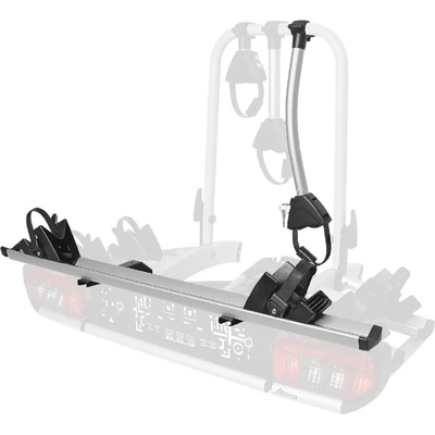 Adaptér Atera 022711 pro zvýšení kapacity německého nosiče kol na tažné zařízení Atera Strada 3 Evo. Umožní rozšíření Atery Strada 3 Evo na 4 jízdní kola. Adapter se montuje pomocí konzol nad svítilny nosiče kol a prodlužuje délku nosiče. Součástí je zamykatelné rameno...