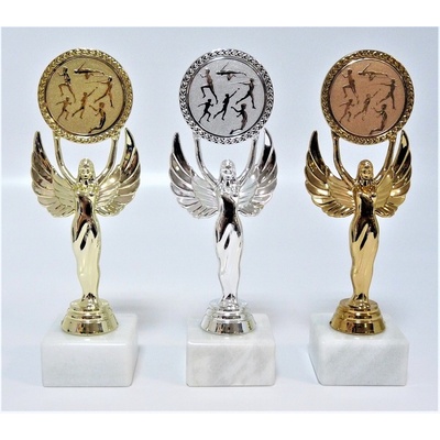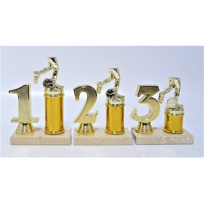 F32-830-6. Velikost trofejí je 21 cm včetně mramorového podstavce. Při nákupu jedné sady trofejí (zlatá, stříbrná, bronzová) - text na štítek napište jen do rubriky "štítek na"...