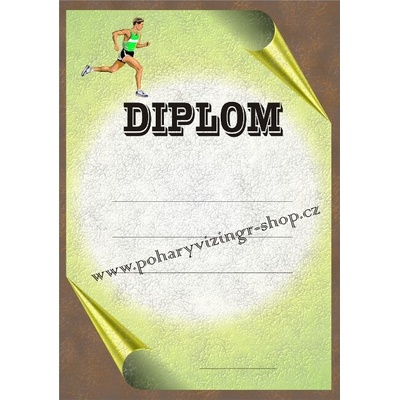 Zelený diplom ATLETIKA 6632 s atletickým oválem, se zeleným polem pro 4 řádky textu a žlutozeleným nápisem DIPLOM. Atletický diplom 6632 máme ve formátu A4. Papírový diplom s...