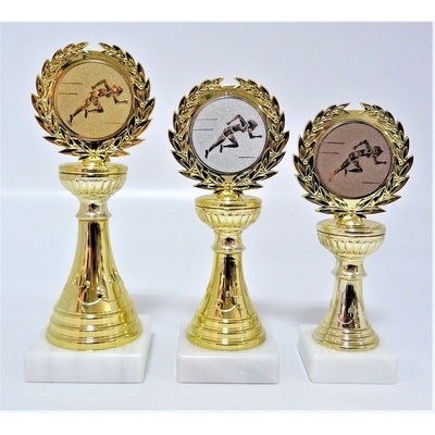 F32-830-LAC014. Velikost trofejí je 21 cm včetně mramorového podstavce. Při nákupu jedné sady trofejí (zlatá, stříbrná, bronzová) - text na štítek napište jen do rubriky "štítek...