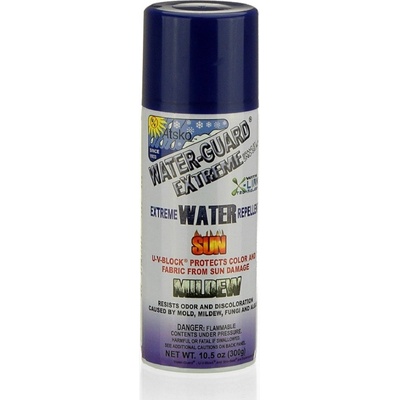 Impregnace Water-Guard extreme Atsko 300g impregnace ve spreji povrch ošetřený tímto přípravkem se stává voděodolný odolné vůči UV záření chrání barvy před vyblednutí Rozměry: cca 6,5 x 6,5 x 20 cm Výrobce: Atsko