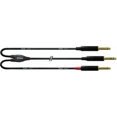 Adaptérový kabel CFY VPP Y s 1x 6,3mm stereo jack konektorem na 2x 6,3mm mono konektor je velmi oblíbený nástroj například pro přenos signálu z mixážního pultu do kláves....