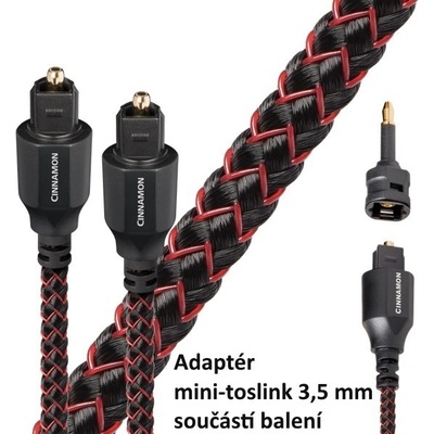 Optický kabel:Audioquest Cinnamon Optilink / 0,75m Vynikající optický kabel s konektory Toslink - Toslink (+ v balení adaptér 3,5 mm mini-toslink) Vyšší čistota vlákna s nižším rozptylem světla zajišťuje lepší přenos informace a méně ztrát Precizně leštěné optické...