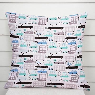 Bavlněný povlak na polštář s milým dětským motivem modrých a šedých autiček a autobusů na bílém podkladu. Je ušitý z hustě tkaného 100% bavlněného plátna s certifikátem...