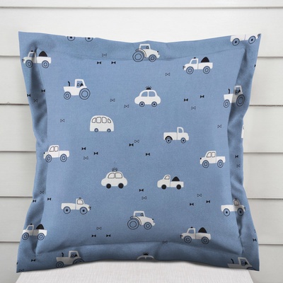 Bavlněný povlak na polštář s ozdobným lemem, s milým dětským motivem traktorů a autíček na modrém podkladu. Je ušitý z hustě tkaného 100% bavlněného plátna s certifikátem...