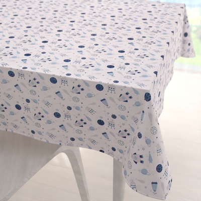 Dětský bavlněný čtvercový dekorační ubrus na stůl s milým dětským motivem modrých a šedých autiček a autobusů na bílém podkladu. Je ušitý z hustě tkaného 100% bavlněného plátna...