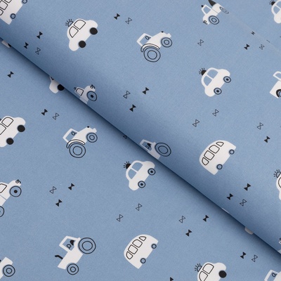 100% bavlněné plátno s milým dětským motivem traktorů a autíček na modrém podkladu. I přes svou jemnost je látka dostatečně pevná a po vyprání drží tvar a barevnost, také...