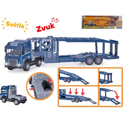 Přepravník aut na setrvačník se světelnými a zvukovými efekty. Vybírat můžete ze dvou barevných variant. Rozměr: 40 cm Měřítko: 1:24 Materiál: kov, plast Barva: modrá,...