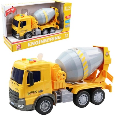 Auto stavební válec na setrvačník s efekty. Rozměry 25x12x12,5 cm. Na setrvačník. Vydává světelné a zvukové efekty. Aktivace tlačítky na střeše (zvuky couvání, troubení,...