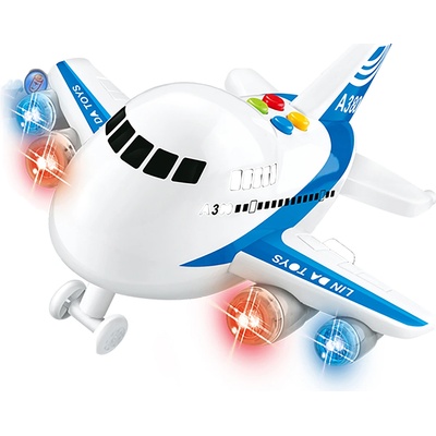 Letadlo na setrvačník s efekty. Rozměry 21x22x13,5 cm. Na setrvačník. Vydává světelné a zvukové efekty. Aktivace tlačítky na střeše. 2xAA baterie nejsou součástí.