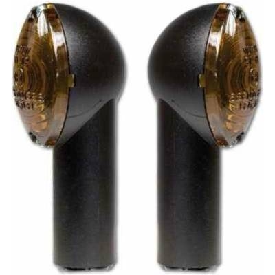 Blinkry na moto OVAL 221 černé s oranžovým sklíčkem blinkry osazeny čirými žárovkami 12V 10W včetně napojovacích kabelů s konektory dlouhá nožička, závit M 10 homologace E 11...