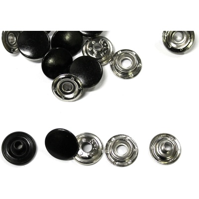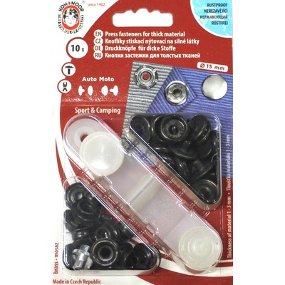 Natloukací knoflík nýtovací na silné látky AUTO MOTO 15mm Barva: černý lak na vnější čepičce druku + stříbrný podklad sada obsahuje 4ks na tvorbu 1 druku - volně sypané, bez...