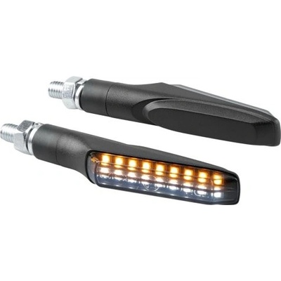 Ukazatele směru na motocykl VICTORY. Nová generace směrových světel kombinovaných s předním pozičním světlem v LED provedení. Sada dvou ks. Kabely s quick-fit konektory. SMD LED...