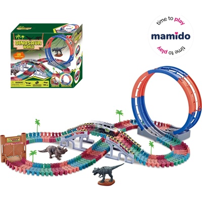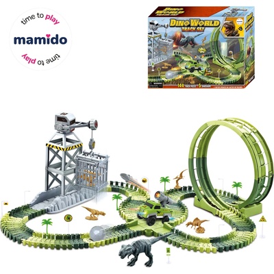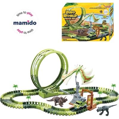 Vstup do prehistorického světa s dinosauří závodní dráhou, která nabízí nekonečné dobrodružství. Postav si vlastní dráhu s mosty, zatáčkami a tunely, vypusť elektrické autíčko...