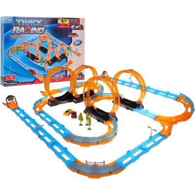 Dvojitý závodní okruh s 4 smyčkami 360° je určen pro děti od 3 let. Sada obsahuje 59 barevných plastových dílů, které se snadno sestavují. Na trati jsou rovné úseky pro rozjezd...