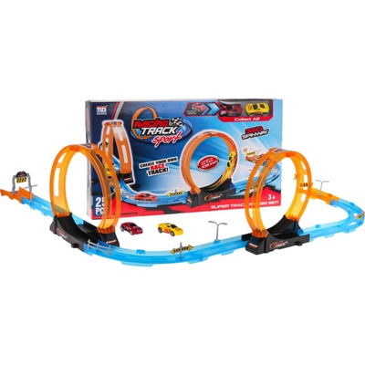 Dvojitý závodní okruh s 4 smyčkami 360° je určen pro děti od 3 let. Sada obsahuje 59 barevných plastových dílů, které se snadno sestavují. Na trati jsou rovné úseky pro rozjezd...