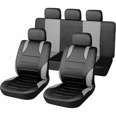 Potahy sedadel sada 9ks SPORT šedé AIRBAG Potahy sedadel s univerzálním systémem upevnění SPORT AIRBAG, sada na celý vůz. Balení obsahuje: potah na přední sedadlo (2x) zadní sedák (celý) zadní opěradlo (celé) opěrku hlavy (5x) Díky jednoduchému systému upevnění, lze...