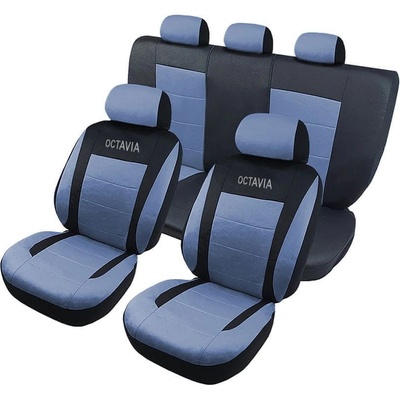 Autopotahy Škoda Octavia II. Přední sedačky s kapsami, přední loketní opěrka. Zadní opěradlo a sedadlo dělené, bez zadní loketní opěrky, 5 opěrek hlavy, kryty podběhů. Zadní...