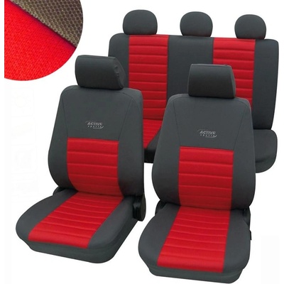 Univerzální autopotahy Active Sports – červené Autopotahy Active Sports jsou složeny z 11 dílů. Řidič – 1x opěrná část, 1x sedací část, 1x potah opěrky hlavy Spolujezdec –...