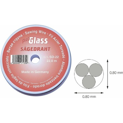 Vyřezávací struna pro vyřezání lepených autoskel ProGlass SD-22 Kulatý profil průměru 0,80 mm Délka 22 m, na plastové cívce. Pevnost v tahu: 110 kg (1078 N)