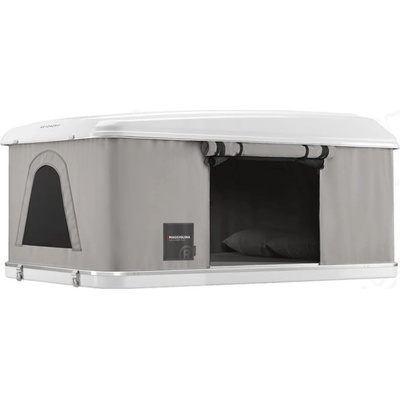 Střešní stan MAGGIOLINA AIRLANDER PLUS MEDIUM GRAY s bílou skořepinou, barvou látky gray (světle šedá), délkou 210 cm, šířkou 145 cm (medium) a výškou 110 cm (otevřený) / 30 cm...