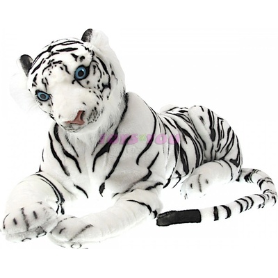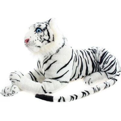 Plyšový tygr bílý ležící 49 cm Náš plyšový bílý tygr má hlavičku nakloněnou zvědavě na stranu a inteligentní pohled živých modrých očí vyzývá malého majitele nebo majitelku ke...
