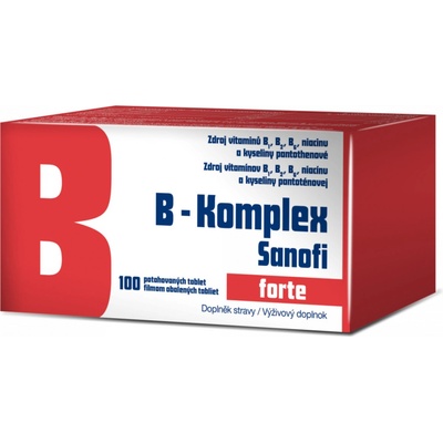 Doplněk stravy B-komplex Zentiva Forte obsahuje vitaminy skupiny B (B1,B2, B3, B5, B6). Balení obsahuje 100 ks potahovaných tablet.
