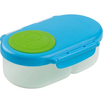 B.BOX Svačinový box střední - modrý/zelený Najdete zde oddělení pro ovoce, zeleninu, nebo na čtvrtky nakrájený toast. Naprosto jedinečné zpracování víčka krabičky s elastickým kroužkem umožní vložit do krabičky celé jablko! Silikonové dvojité víčko pak dovolí skladovat...