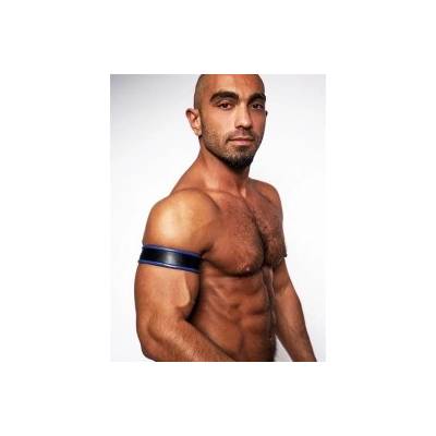 Mister B Leather Biceps Band Black Blue - černo-modrý kožený pásek na biceps z kolekce Mister B Leather. Doplňte svůj párty outfit těmito úžasnými koženými bicepsovými páskami...