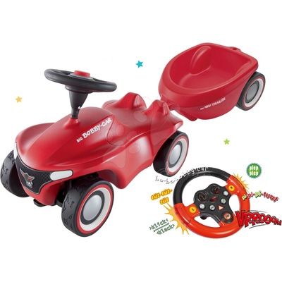 Červené odrážedlo auto Bobby Car Neo se zvukem, přívěsný vozík a interaktivní volant se zvukem a světlem je perfektní souprava hraček, se kterou se zabaví všichni malí řidiči...