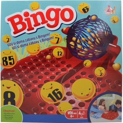 Bingo je klasická soutěžní hra. Toto povedení obsahuje barevné žetony, bílé kuličky s čísly, plastový zásobník a především vychytaný kovový losovací buben. Každý hráč má jednu...