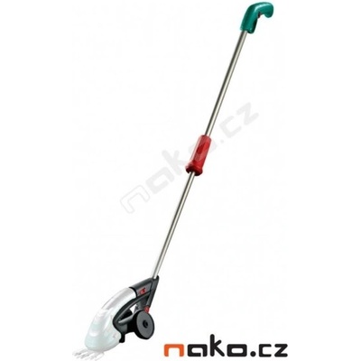 nůžky na trávu • napětí akumulátoru 3,6 V • doba chodu bez zatížení až 50 min • délka čepele 12 cm • Bosch 3,6 V POWER FOR ALL • 120 mm na keře • 80 mm na trávu • hmotnost 0,6 kg