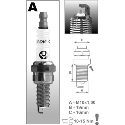 Zapalovací svíčka Brisk N15C, řada SUPER, s jednou vnější elektrodou, střední elektroda s mědděným jádrem nebo elektroda vyrobená ze speciální slitiny itria s mědí, určena pro vozidla používající olovnatý i bezolovnatý benzín, univerzální použití pro různé druhy...