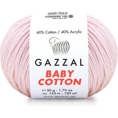 Gazzal Baby Cotton Osvědčená kombinace bavlny a akrylu v luxusním hedvábně jemném provedení v široké škále krásných barev. Hypoalergenní. Na hračky, čepičky, svetříky, bačkůrky,...