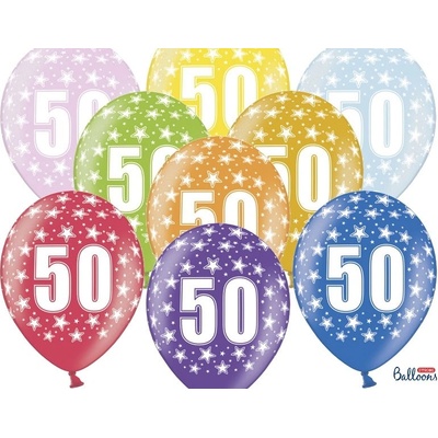 Lze plnit vzduchem i heliem. Latexový balonek s číslem 50 mix metalických barev (růžová, červená, žlutá, zelená, oranžová, světle modrá, tmavě modrá, fialová) s celoplošným...