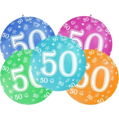Originál balónek číslo "50" lesklé barvy, vel. 30 cm, cena za 6 ks mix barev, vhodný pro nafukování vzduchem i heliem.