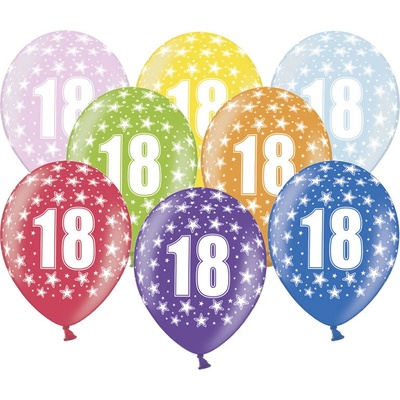 Latexový balónek s potiskem čísla 18 Latexový balónek s potiskem čísla 18 je vhodný na výzdobu oslavy 18. narozenin Balónky jsou vysoké kvality a lze je nafukovat vzduchem...
