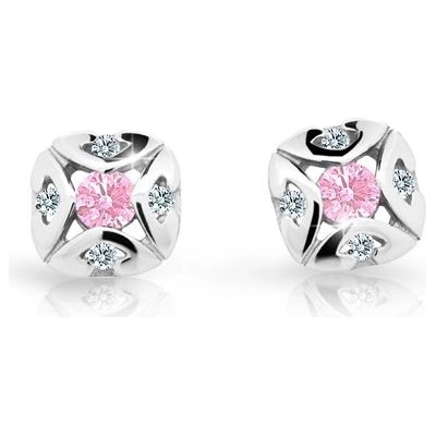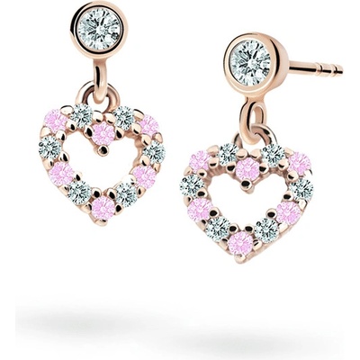 Danfil dětská srdíčka C2160 z bílého zlata s kamínky Pink zapínání balónek