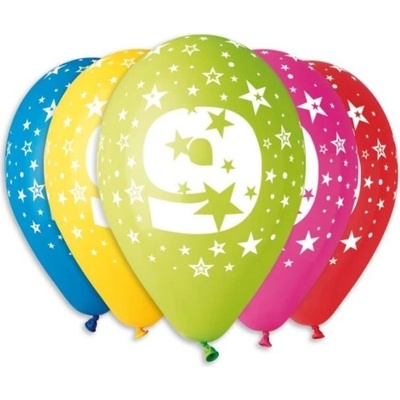 Nafukovací balónky s potiskem číslice 9 využijete k výzdobě narozeninové párty. Vhodný k naplnění héliem i vzduchem. Různé barvy. Balónky jsou baleny v sáčku po pěti kusech....
