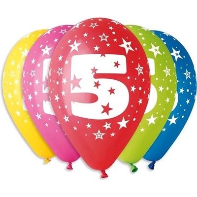 Nafukovací balónky s potiskem číslice 5 využijete k výzdobě narozeninové párty. Vhodný k naplnění héliem i vzduchem. Různé barvy. Balónky jsou baleny v sáčku po pěti kusech....